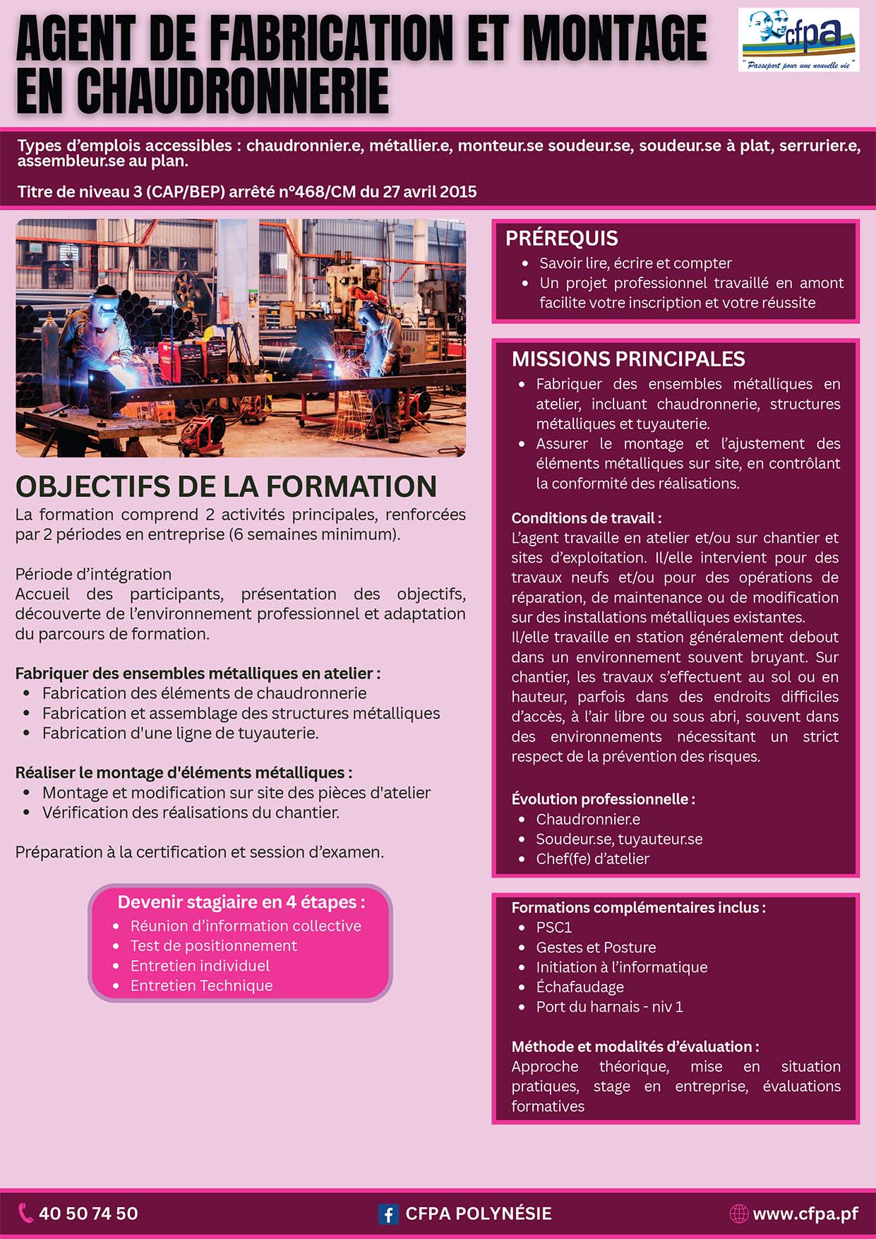 Agent de Fabrication et Montage en Chaudronnerie (A.F.M.C.)