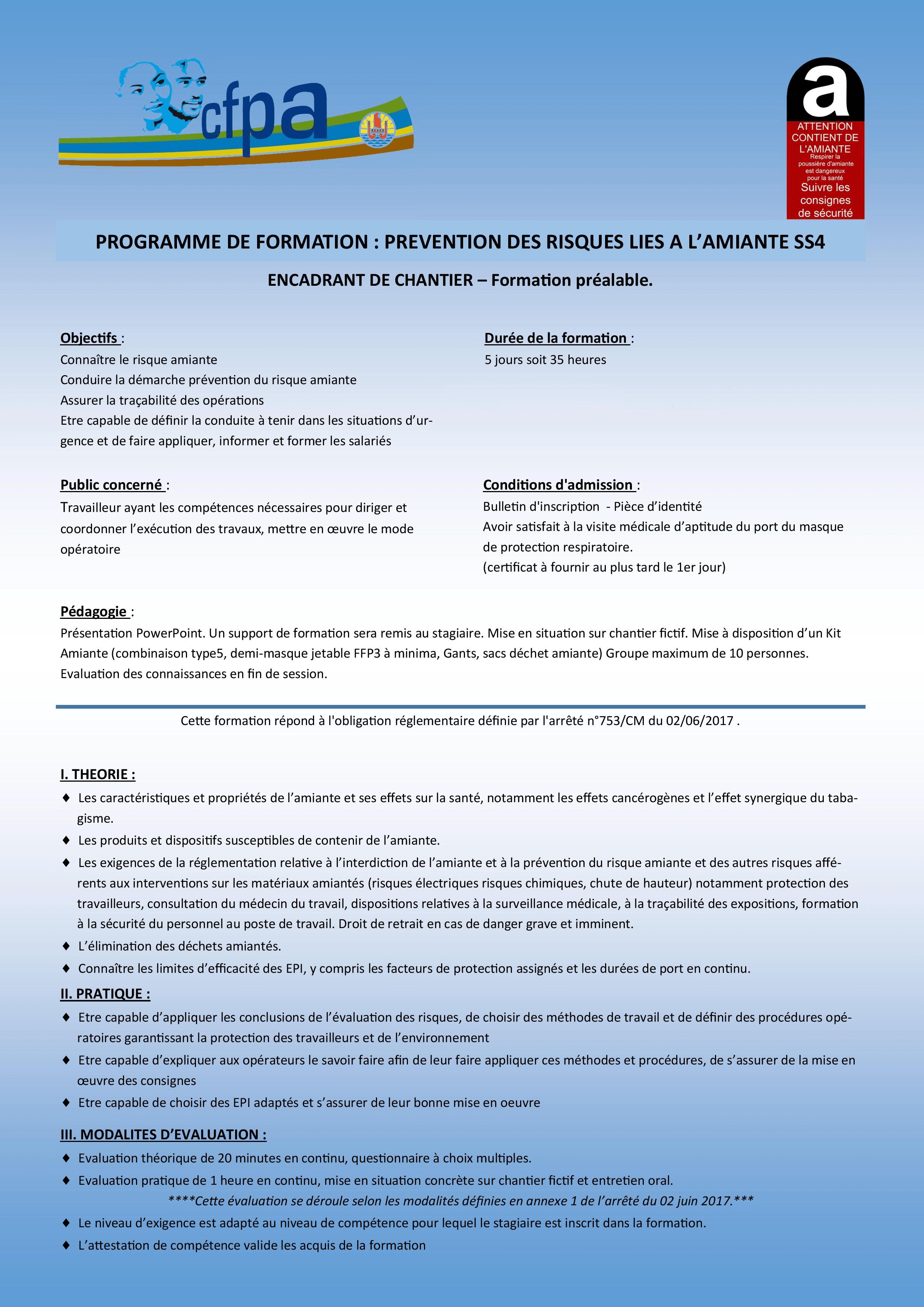 Nous ne sommes plus en mesure de réaliser la formation SS4 jusqu’à nouvel ordre. Nous ne sommes plus en mesure de réaliser la formation SS4 jusqu’à nouvel ordre. Cette formation est payante Télécharger la fiche de formation Besoin de renseignement ? Contactez-nous Besoin de renseignement ? Contactez-nous Où se former ? Où certifier ses compétences ? Unité de formation de Punaruu - Tel : 40 50 75 50