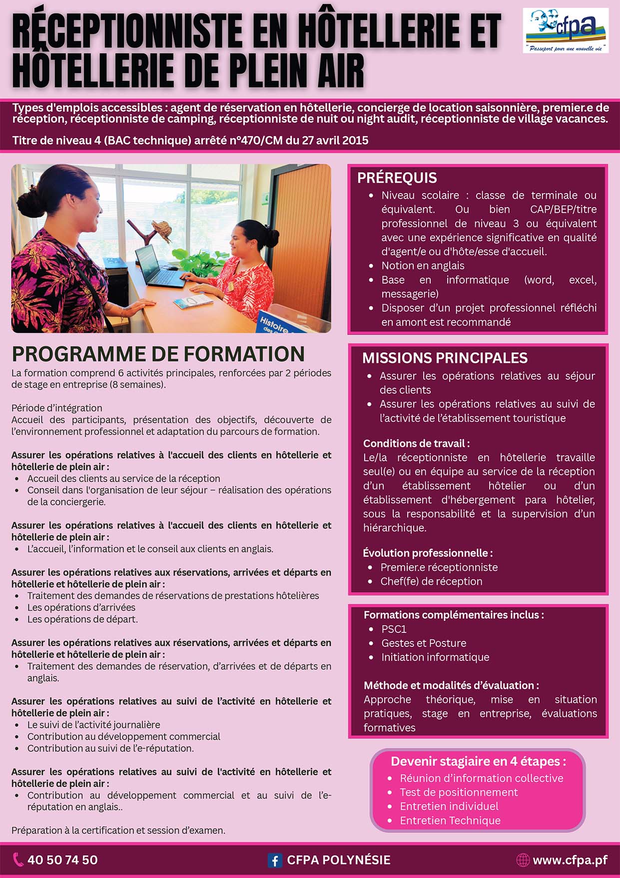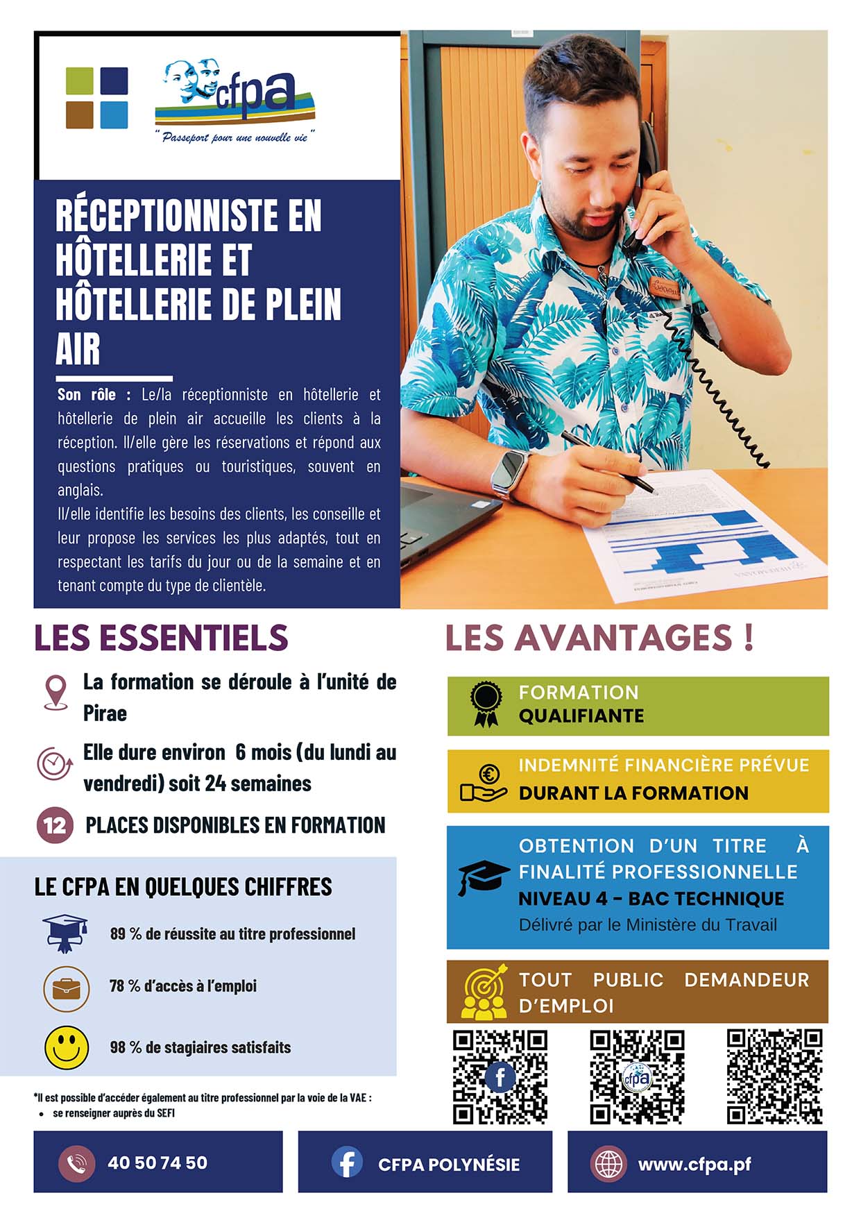 Télécharger la fiche de formation S'inscrire à l'unité de Pirae Besoin de renseignement ? Contactez-nous Besoin de renseignement ? Contactez-nous Où se former ? Où certifier ses compétences ? Unité de formation de Pirae - Tel : 40 50 74 50