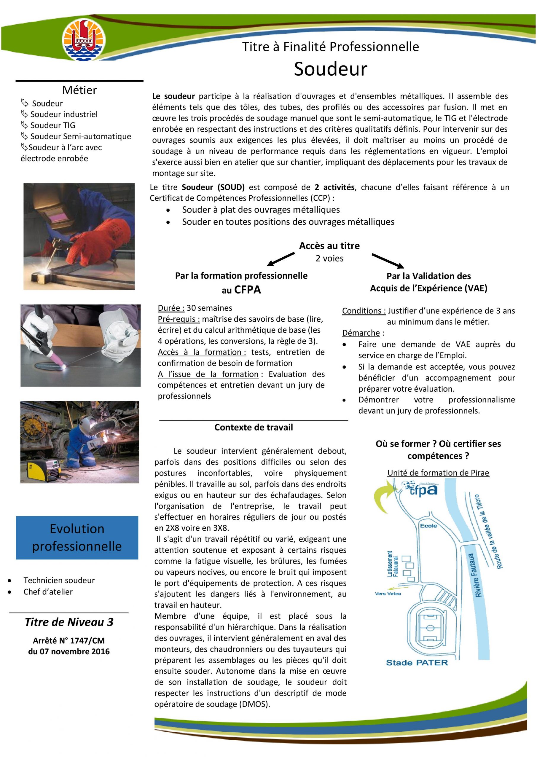 Télécharger la fiche de formation Besoin de renseignement ? Contactez-nous Besoin de renseignement ? Contactez-nous Où se former ? Où certifier ses compétences ? Unité de formation de Pirae - Tel : 40 50 74 50
