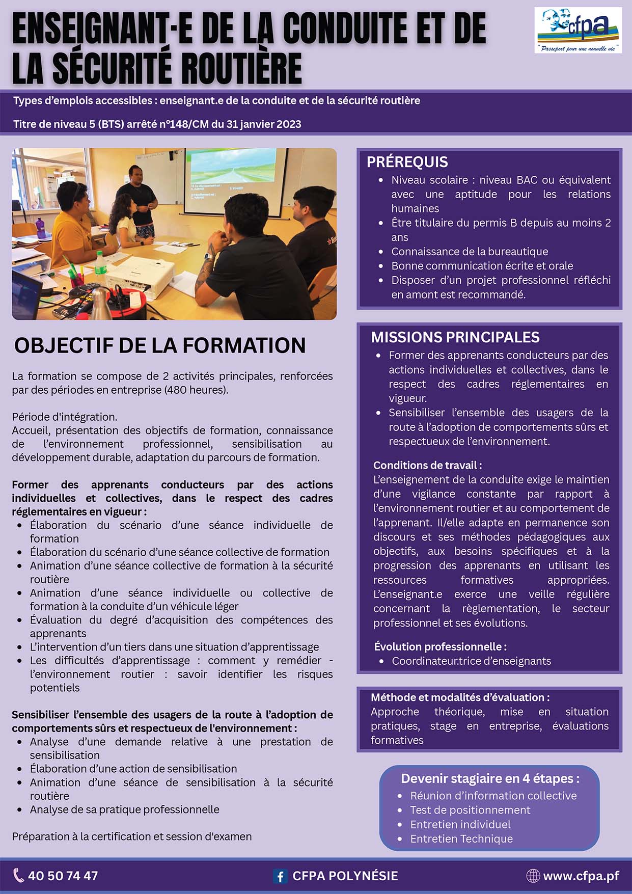Télécharger la fiche de formation S'inscrire à l'unité de Pirae Télécharger la fiche de formation S'inscrire à l'unité de Pirae Besoin de renseignement ? Contactez-nous Besoin de renseignement ? Contactez-nous Où se former ? Où certifier ses compétences ? Unité de formation de Pirae - Tel : 40 50 74 50 Unité de formation de Taravao - Tel : 40 50 88 50