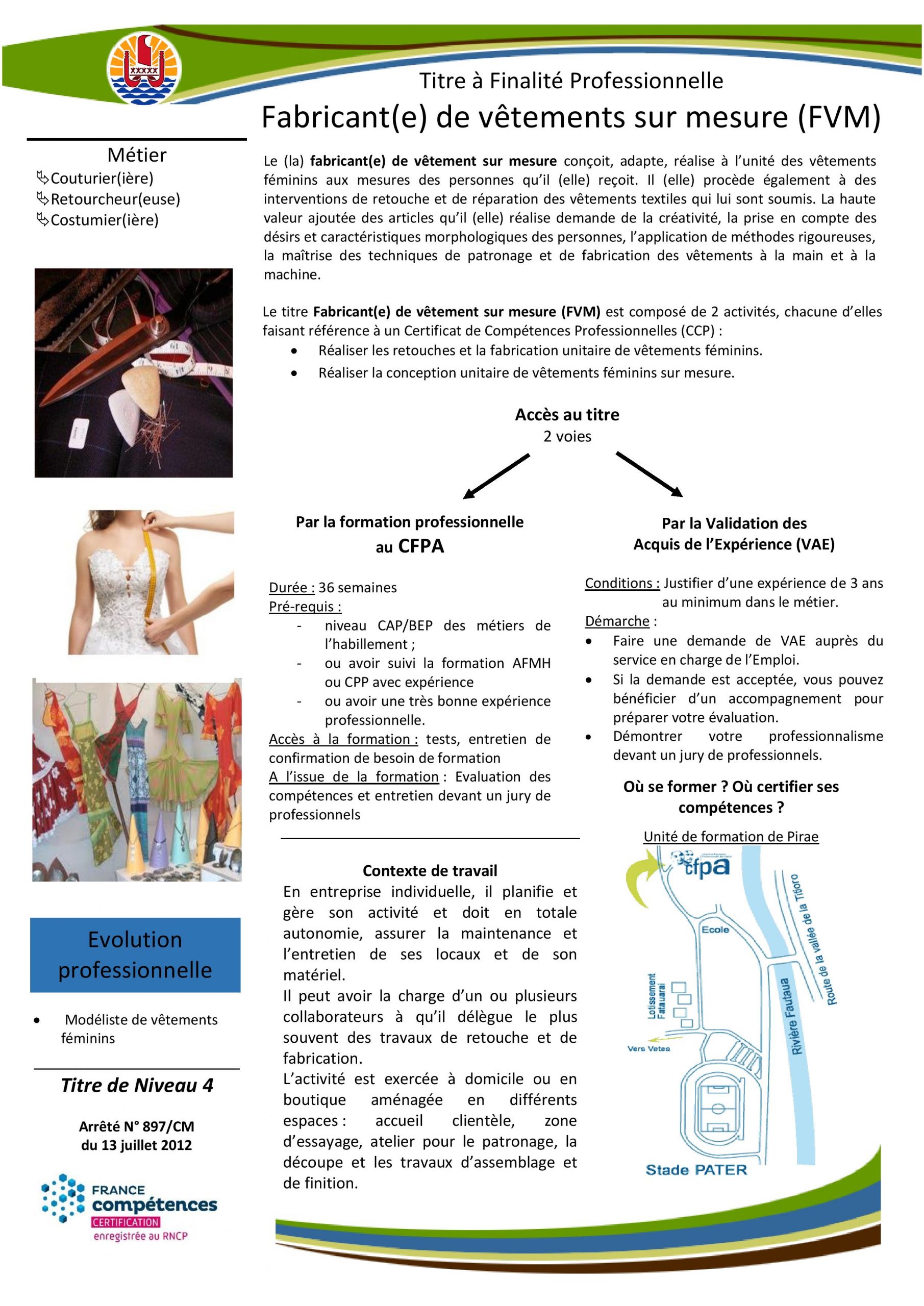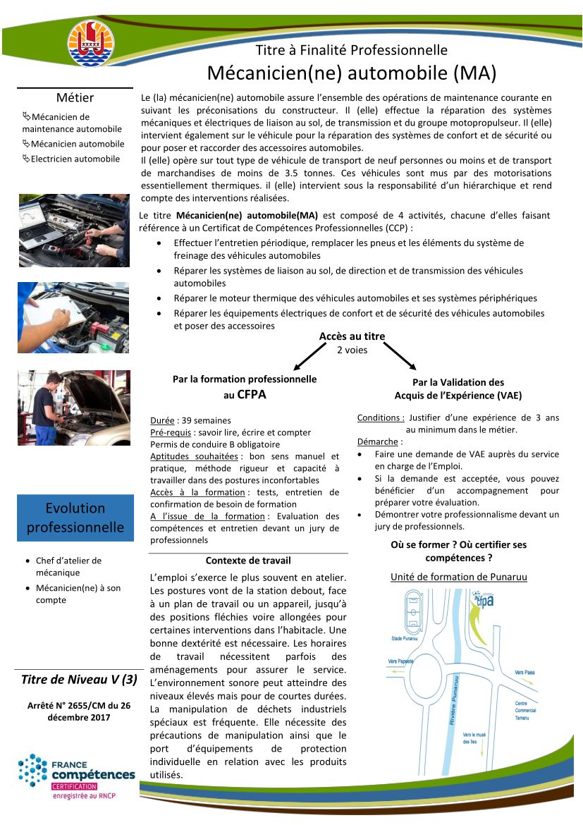 Télécharger la fiche de formation S'inscrire à l'unité de Pirae Besoin de renseignement ? Contactez-nous Besoin de renseignement ? Contactez-nous Où se former ? Où certifier ses compétences ? Unité de formation de Pirae - Tel : 40 50 74 50