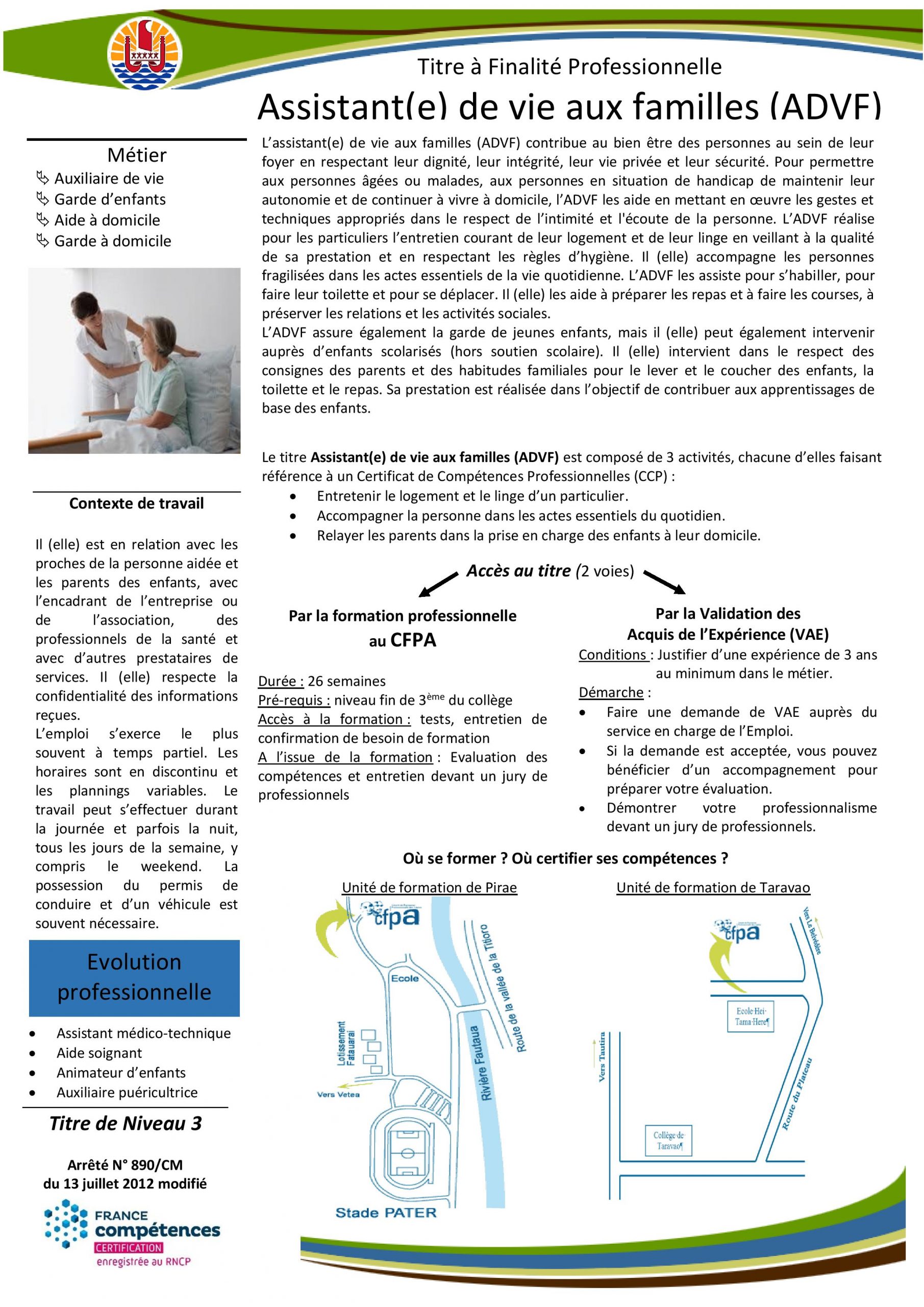 Les formations du domaine Tertiaire et Services Date d'inscription Agent de Propreté et d'Hygiène (A.P.H.) Assistant(e) de Vie aux Familles (A.D.V.F.) Conducteur de Transport en Commun en Polynésie Française (C.T.C.P.F) Couturier(ière) d’Ameublement (C.A.) Couturier(ière) de Prêt à Porter (C.P.P.) Enseignant de la Conduite et de la Sécurité Routière (E.C.S.R) Fabricant(e) de Vêtements sur Mesure (F.V.M.) Formation aux Métiers de la Bureautique (F.M.B.) Secrétaire comptable (S.C.) 1 2 Suivant »